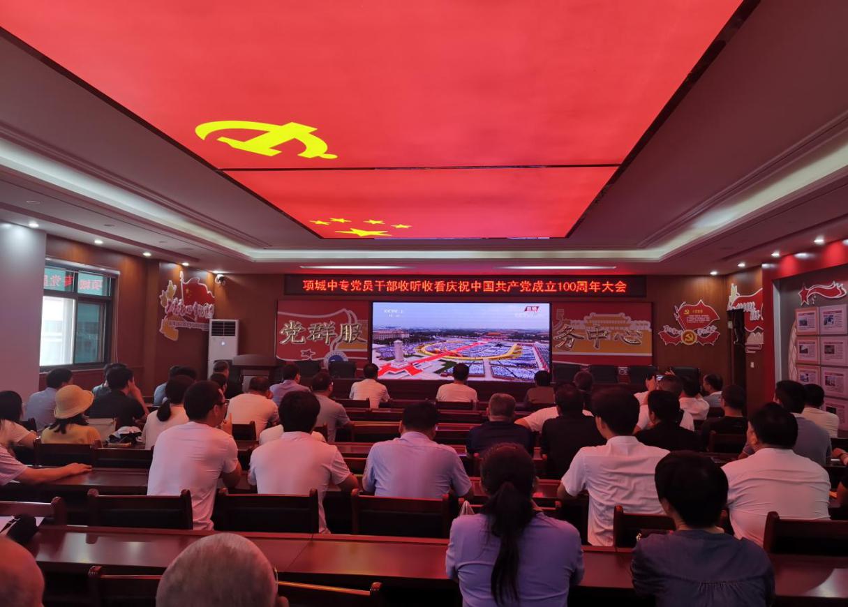 项城中专收听收看中国共产党成立100周年庆祝大会7月1日上午8时,庆祝中国共产党成立100周年大会在北京天安门广场隆重举行。中共中央总书···