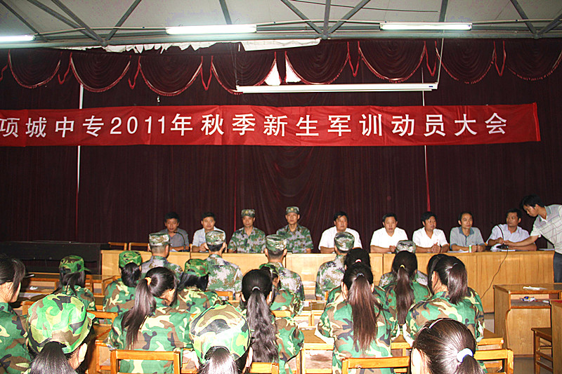8月17日上午,项城中专五楼会议室,数百名新生统一着装,列队整齐,军训动员大会正在召开。学校领导高必兴、潘志刚、王云昭、张锦军、付高木、陈新峰等出席会议,全体承训教官和新生班主任参加会议。