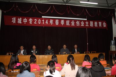 2014年4月20日晚上,项城中专14年春季就业创业教育系列活动在实训楼五楼会议室拉开了帷幕。计算机专业部的全体师生,分管计算机部王云昭校长、政教处张张成礼主任、招生就业办的陈放主任和学生一起,共论中职生就业必备的素质、就业的理念、就业的前景。