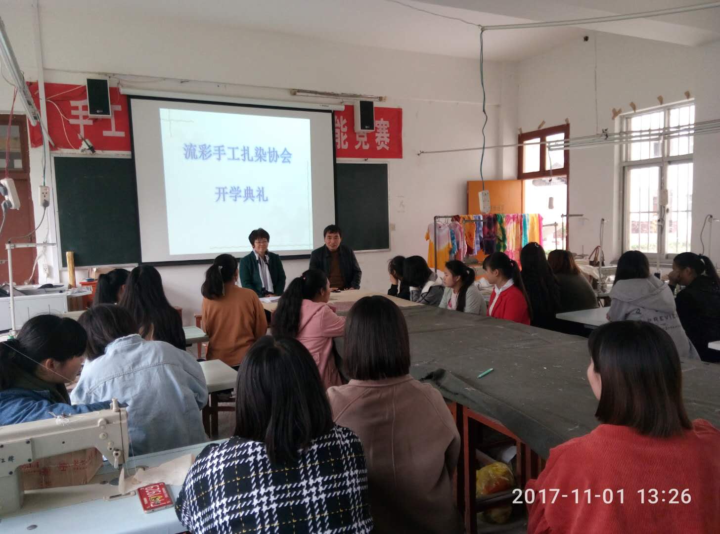2017年11月1日中午,多宝·duobao官方网站-登录入口流彩手工扎染协会在服装西工艺实习室举行开学典礼。