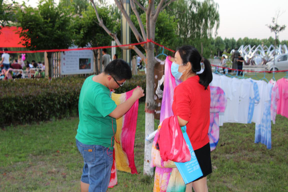 5月12日下午,服装旅游专业教师同学校一起到驸马沟廉政广场进行职业教育宣传活动,王赟、于坤平、范桂生、潘艳艳等老师积极参与其中。以展板、展架、宣传页、扎染丝巾、服装的形式重点介绍服装专业和旅游专业的办学特色,介绍学生技能训练情况,讲解扎染的传统制作工艺,让社会了解职业教育的人才培养过程、办学特色,改变对职业教育、对服装专业的传统看法。