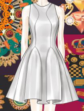 注:①根据款式图中的设计元素设计出三款服装,选择其中一款进行着色,着色效果要体现面料质感及图案花纹;