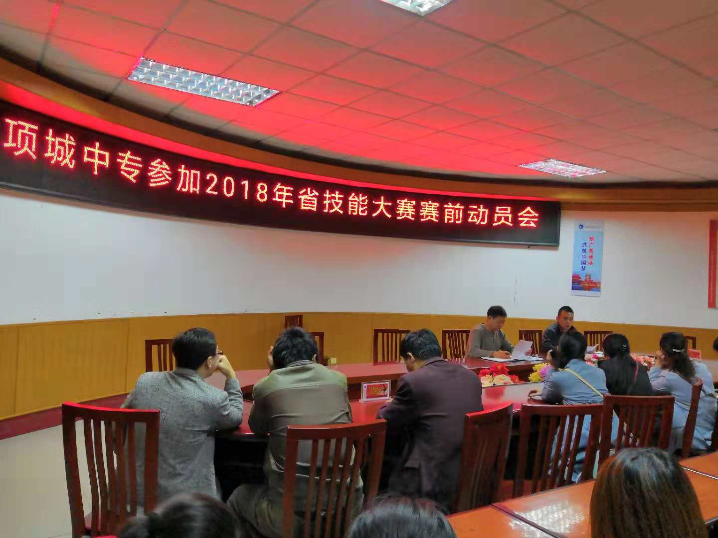 2018年10月18日,临近省中职技能大赛举行日期,张校长以及教研室主任组织召开省技能大赛赛前动员会。服装专业辅导教师潘艳艳、于坤平、李娜以及5名参赛学生也积极参加赛前动员会议。