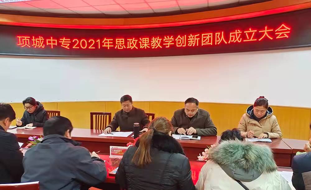 12月20日上午在办公楼二楼召开了项城中专2021年思政课教学创新团队成立大会。副校长张锦军、教务处主任师群力、副主任田秀灵和团队成员参加了思政课教···