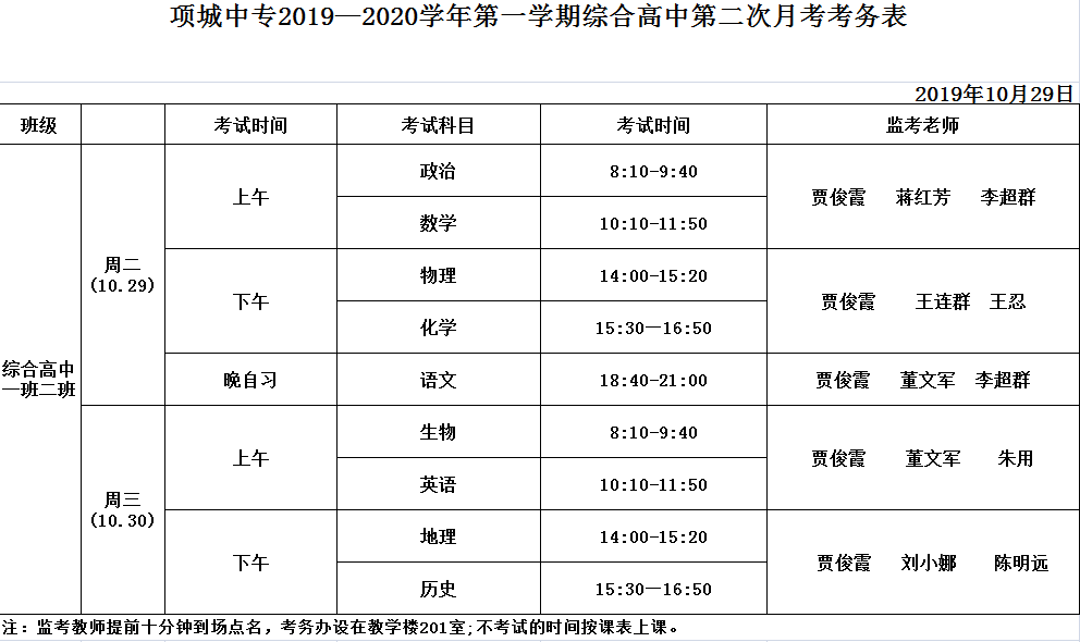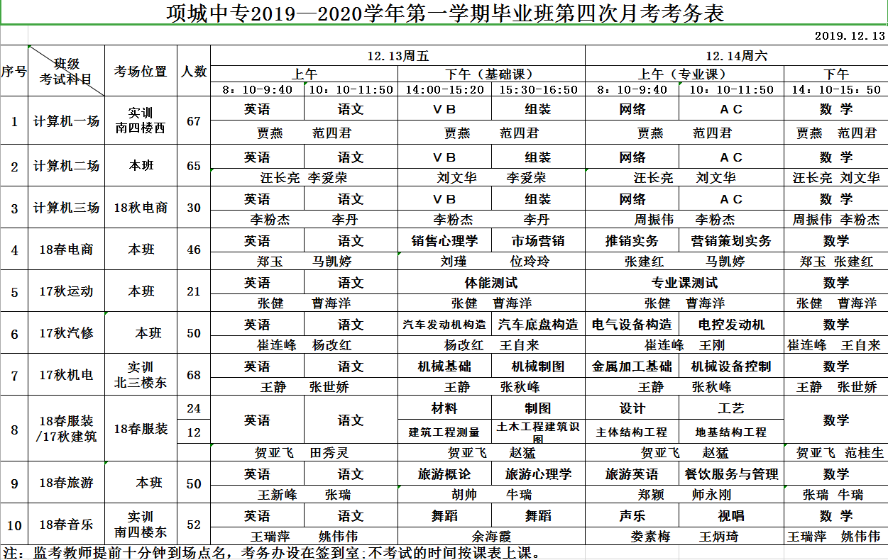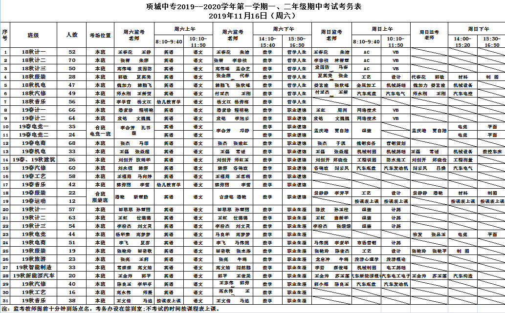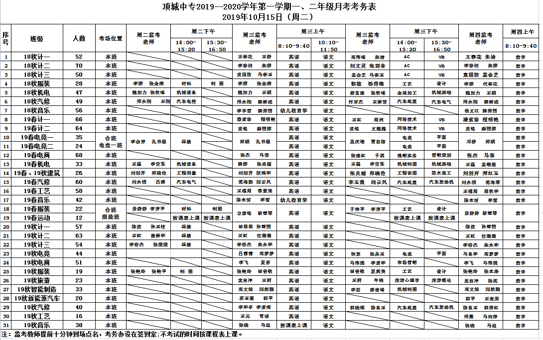 2019年10月15日——10月17日项城中专举行2019年下半期一二年级月考。