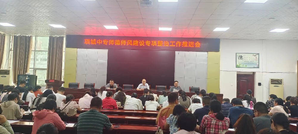 为进一步推进师德师风建设工作,提高教师的思想政治素质和职业道德修养,营造风清气正的教育生态,6月17日晚,项城中专师德师风建设专项整治工作推进会在校实训楼五楼会议室···