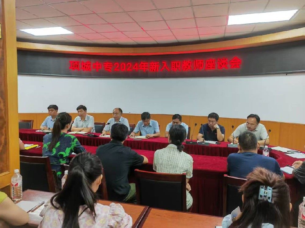 2024年9月1日上午,项城中专在办公楼二楼召开了2024年新入职教师座谈会。19名新入职教师,陈新峰校长和全体校委会成员,中层正职,各专业部主任教研组长参加了会议。首先,···