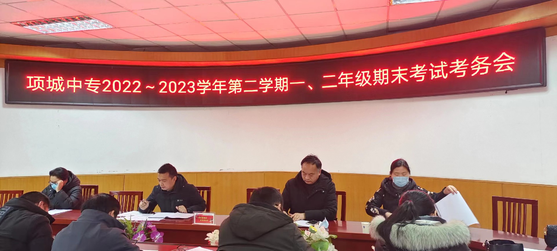 因疫情影响,按照学校年度教学计划,项城中专2023年2月13日组织召开了2022—2023第一学年期末考试考务会。参加会议的有教务处主任师群力,副主任田秀灵、贾俊霞,教研室主任···