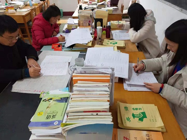英语组教师认真批阅试卷 11月14日下午,为了尽快公布期中考试结果,及时反馈学生考试情况,英语组教师集中批改试卷。···