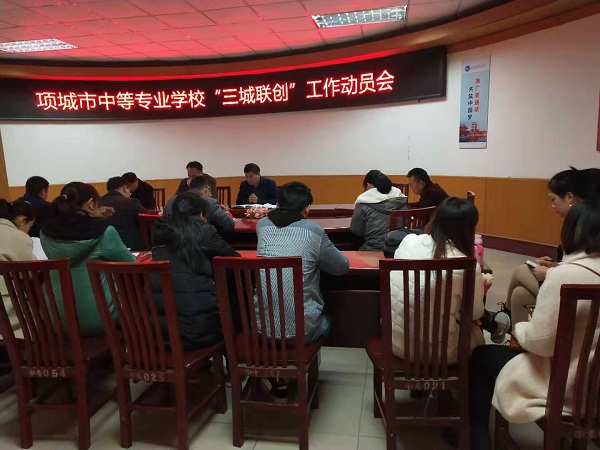 “三城联创”动员会2019年11月20日上午,为全力推进我市三城联创工作,我校在办公楼二楼会议室召开了三城联创工作动员会。参加会议的有学···