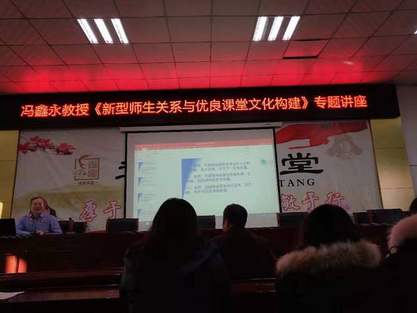 《新型师生关系与优良课堂文化构建》专题讲座2019年11月28日下午,我校举办《新型师生关系与优良课堂文化构建》专题讲座,200多名师生聆···