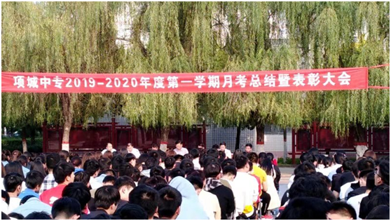 毕业班第一次月考总结及表彰大会2019年10月13日下午,为了进一步激励毕业班师生士气,鼓足干劲,我校全体毕业班师生在学校篮球场举行了毕···