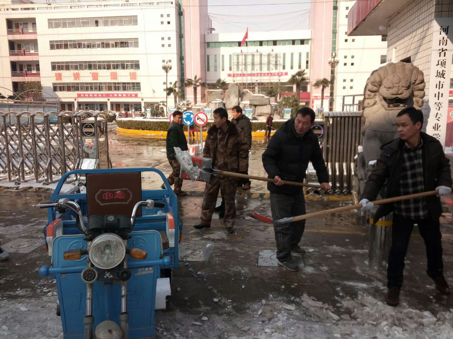 2018年元月24日晚至25日白天,我市再次普降大雪。26日下午,我校根据上级通知,组织志愿者在学校领导的带领下,开展了校内校外铲雪除冰活动。我组教师张健、韩鹏飞、董鹏飞、王艳蕊四位老师,在上课的间隙积极奔赴正泰路参加清扫积雪活动。他们不畏天寒路滑,拿着扫帚、铁锨,个个斗志昂扬,干的是热火朝天。经过数个小时的辛苦努力,同我校的其他志愿者一起终于将路面的积雪铲除干净。