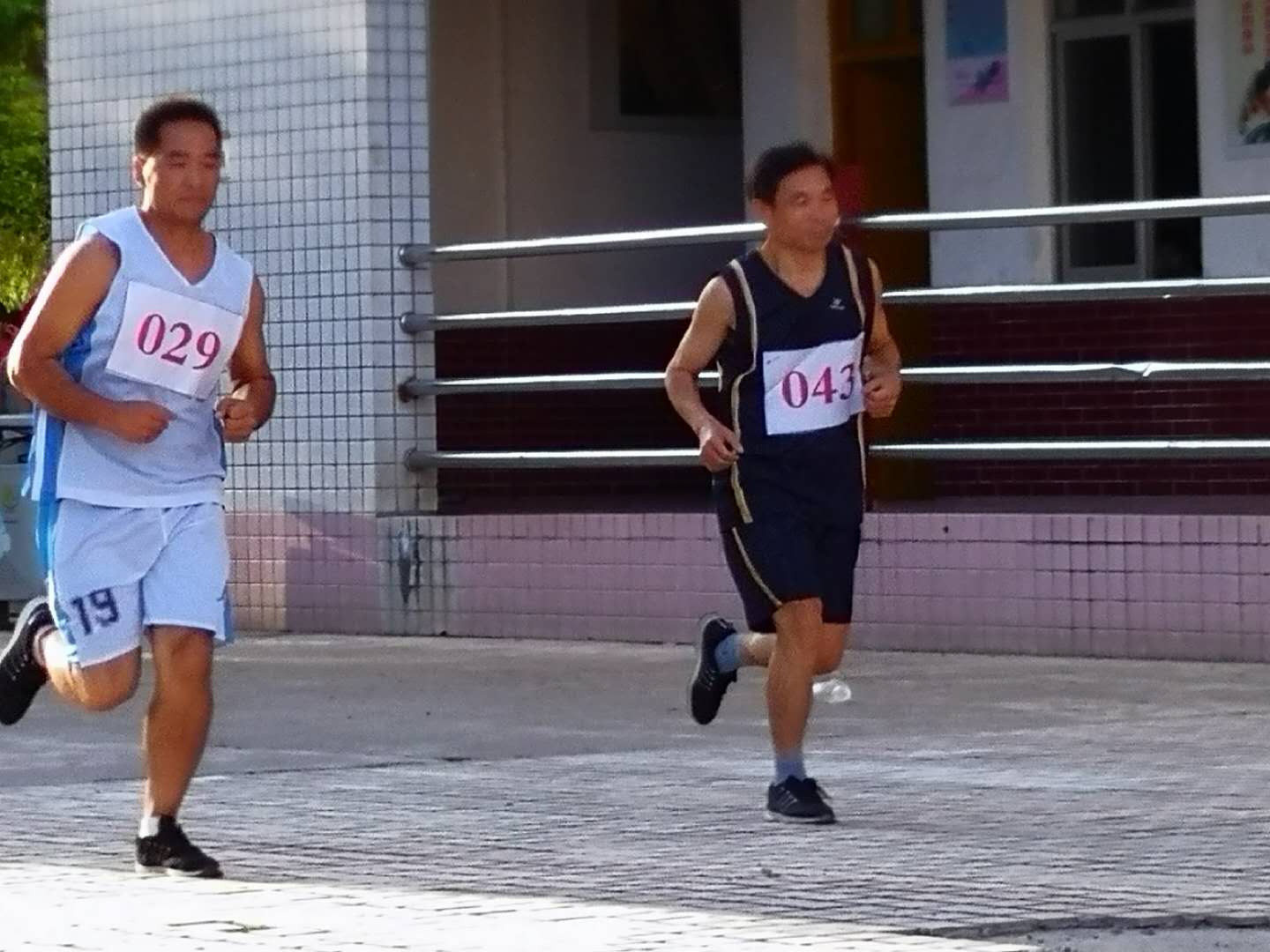 五点比赛准时开始,27名女教师和23名男教师参加了本次长跑比赛,学生啦啦队积极为老师们加油助威,运动气氛十分高涨。