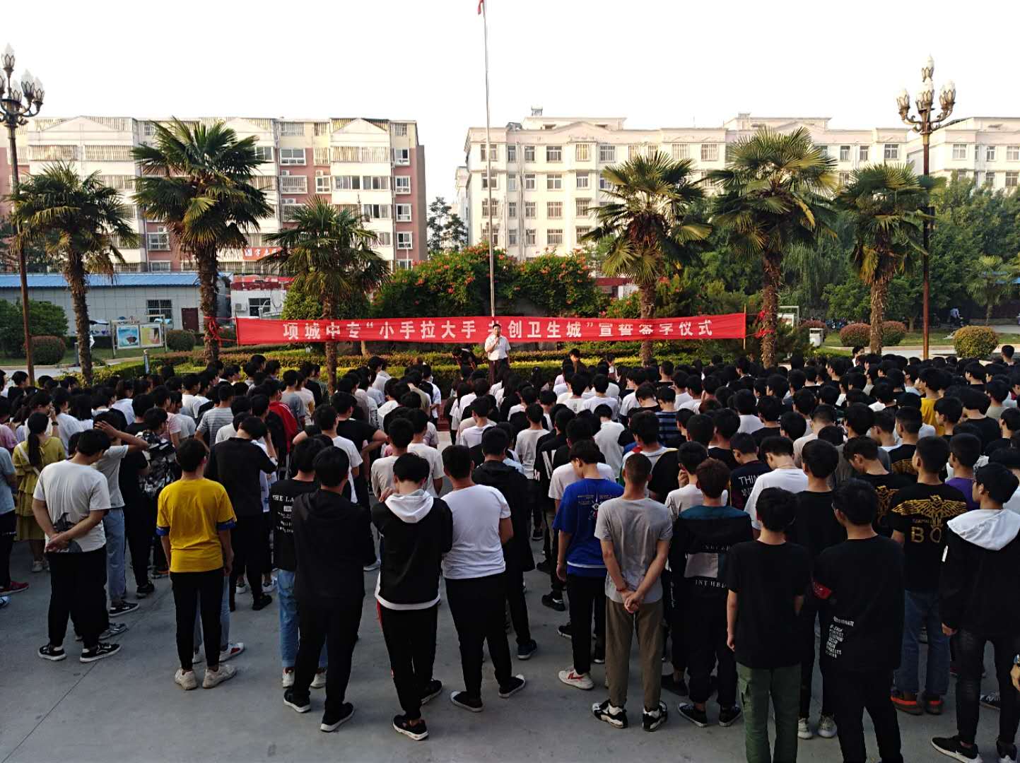 5月27日早晨,项城中专召集全体学生集会,开展“小手拉大手共创卫生城”宣誓签字活动.