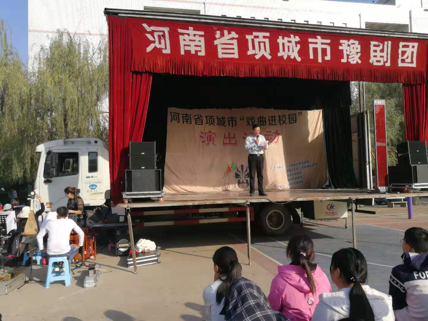 2019年10月30日下午,项城市社区学院戏曲进校园活动之项城中专专场演出在多宝·duobao官方网站-登录入口操场举行,来自项城市豫剧团的豫剧演员们给全···