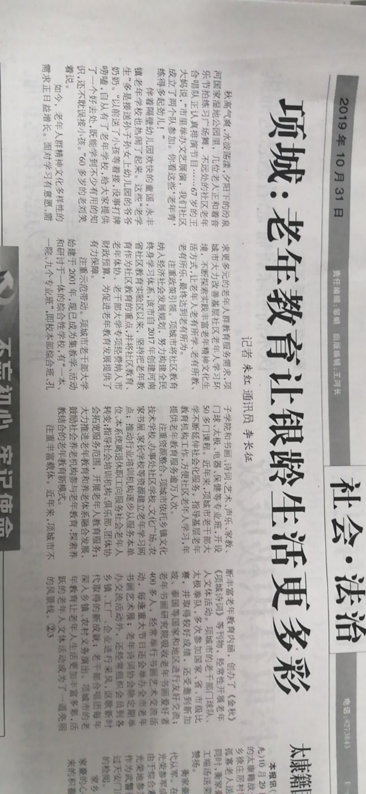 2019年10月31日,项城社区学院上了周口日报,这是对我们全体工作人员工作的肯定,也是一种激励,在以后的工作中我们将更加努力,使项城社···