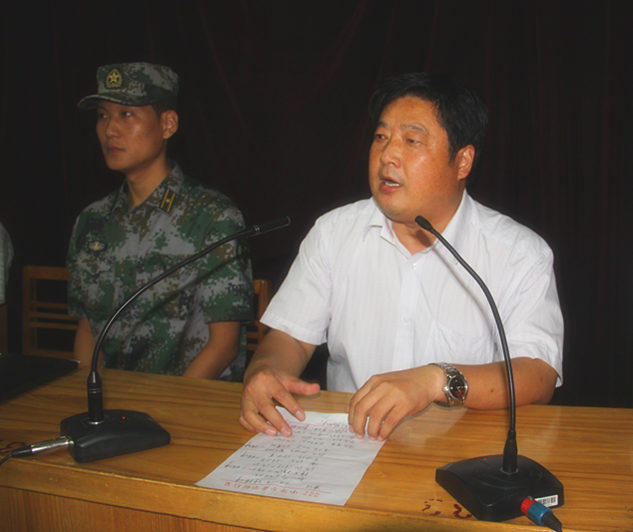 动员大会首先由主抓政教工作的付高木校长讲话。付校长从军训的意义,怎样做好军训期间工作,深入浅出给同学们上了一堂生动的军训课,引来同学们的阵阵掌声。