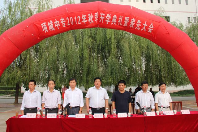 本站讯(通讯员 龙启冲)秋风送爽,丹桂飘香,9月20日下午,项城中专在学校篮球场隆重举行2012年秋季开学典礼暨表彰大会,校长高必星、书记马玉红、副校长王云昭、付高木、陈新峰、朱伯英及办公室主任张化平出席会议。大会由学校副校长王云昭主持。