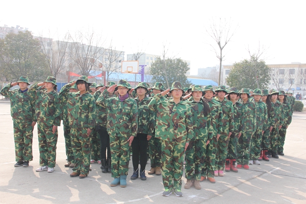 2月20日下午14:00时,我校2014年春季新生军训汇报表演暨表彰大会在校篮球场举行。到会领导有:负责学校全面工作的高校长,主管工会、财务、后勤工作的潘校长,教务工作的张校长,主管政教、团委工作的付校长,主管招生、就业、电大、函授工作的陈校长,政教处张主任,校团委书记汪长亮,周口军分区教导队的马队长。全体新生向学校领导和周口军分区教导队的首长汇报展示了军训成果。