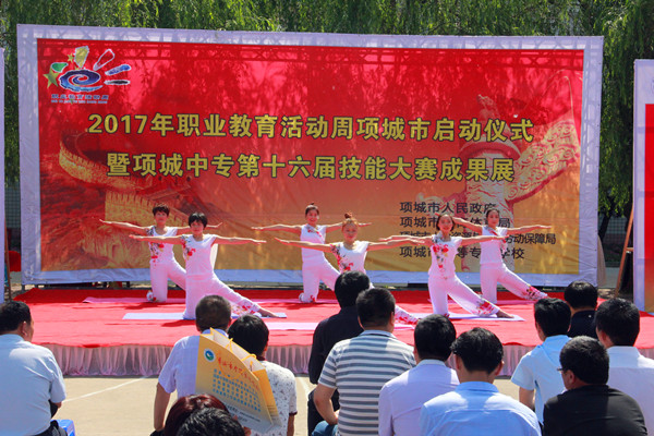 为进一步加快职业教育发展,弘扬劳动光荣、技能宝贵、创造伟大,5月10日上午,项城市2017年职业教育活动周启动仪式在项城中专体育场举行。项城市人民政府领导张爱玲出席启动仪式并作重要讲话,项城市教体局局长张国旗,项城市人社局副局长吴秋生,项城市教体局副局长田领杰,项城市教体局副局长张锦忠,项城市教体局中层以上领导干部,各高中学校校长,全市各中心校校长、初中学校校长,项城中专全体师生参加启动仪式。项城市人社局副局长吴秋生主持会议。