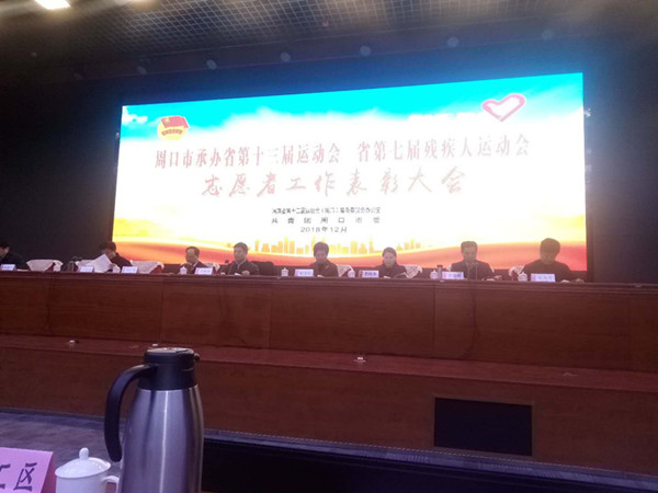 12月27日上午,周ロ市承办省第十三届运动会、省第七届残疾人运动会志愿者工作表彰大会在周口市行政服务中心综合楼二楼会议室召开。