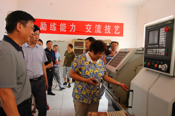 孙春花一行查看数控设备 孙春花一行在中德班实训基地听取汇报 召开座谈会 8月17日上午,扶沟县政协副主席孙春花一行莅···