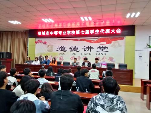 项城中专胜利召开第七届学代会10月15日下午,项城中专第七届学生代表大会在实训楼五楼会议室隆重举行。校政教处主管学生会工作的副主任李···