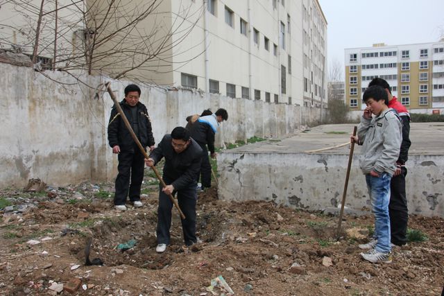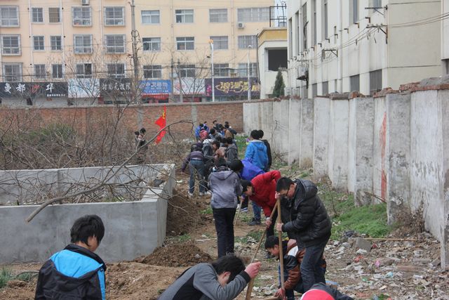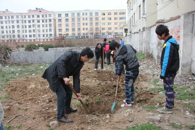 3月是学雷锋月,也是我校“学雷锋、树新风”主题教育月,在这个月中,我校涌现出了许多感人的事情,几乎每天都有学生将捡到的物品交到校广播室,希望通过我们广播室找到失主。同学们所捡到的物品有的是现金、手机、饭卡,有的捡到的可能只是一个小小的钥匙,一个不值什么钱的东西,但从他们这种举动上我们就可以看到他们的精神是一样,都有着一颗拾金不昧、乐于助人的心。在这种精神的感召下,今天(3月19日)又出现了感人的一幕,12春汽修班的班主任赵宏民老师带领着本班的同学,参加了学校的植树活动。面对着寒冷的天气,12春汽修班的师生丝毫没有把这放在心上,在足球场两侧干的热火朝天,在场的每一个人都被他们的这种精神感动着。对于很多同学来说,在家的时候很少做这些事情,难免对植树有些生疏,所以后勤处的高庆华、李德云主任亲自去干、去教同学们如何做。