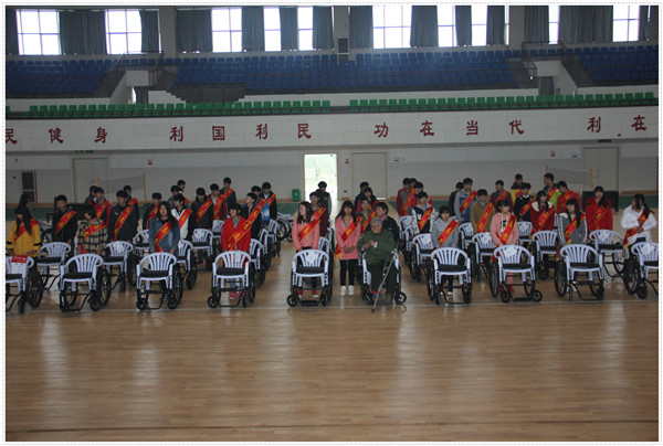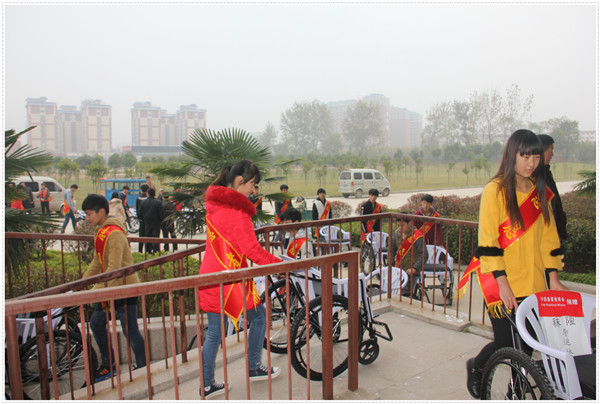 2015年11月12日上午,“美国轮椅基金会、中国基督教两会100辆轮椅免费捐赠仪式” 在体育馆举行。市委常委、市委统战部部长张文成,美国轮椅基金会中国区代表、中国基督教河南负责人等出席了此次捐赠仪式。我校青年志愿者也积极参与了此次非常有意义的活动。在这次仪式上,我校青年志愿者积极的帮助了残疾人朋友,使残疾人朋友感受到了我校青年学生的热情和爱心。