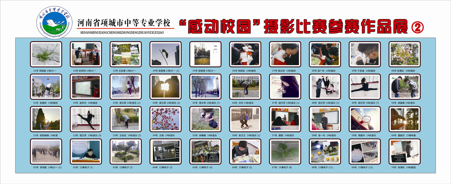 按照校团委工作计划,项城中专“感动校园”摄影比赛如期举办了,此次活动在高校长及校委会领导的大力推动下,各专业部积极参与了这次活动。作品征集工作现已结束,校团委共收到了来自27个班级的728张作品,除不符合参赛主题、网络下载、画面模糊、一稿多投、场景相似的,现将这些作品全部展示出来,请同学们欣赏这一幅幅感动的瞬间,并投出神圣的一票(投票方案另行通知)。