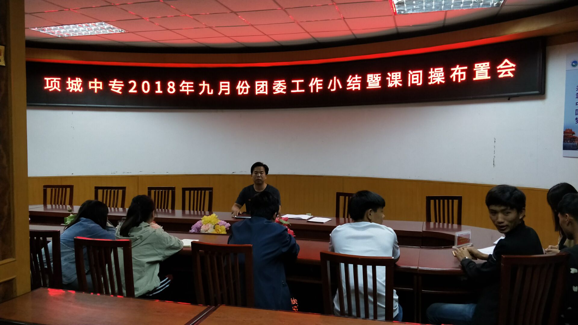 10月9日下午,校团委在办公楼二楼会议室召开了全体团支书会议。会议由校团委办公室主持,宣传部,纪检部的学生干部就九月份各班早晚自习出勤和黑板报办理情况对全体团支书进行通报,表扬了表现较好的班级,同时也指出了存在的问题。文体部的学生干部布置了本学期的课间操工作,并希望各班团支书能够认真组织各班的课间操情况。最后,团委书记汪长亮同志作了总结讲话,指出各班团支书要立足于本职工作,认真做好本班的早晚自习出勤,班会组织,好人好事,黑板报等工作。
