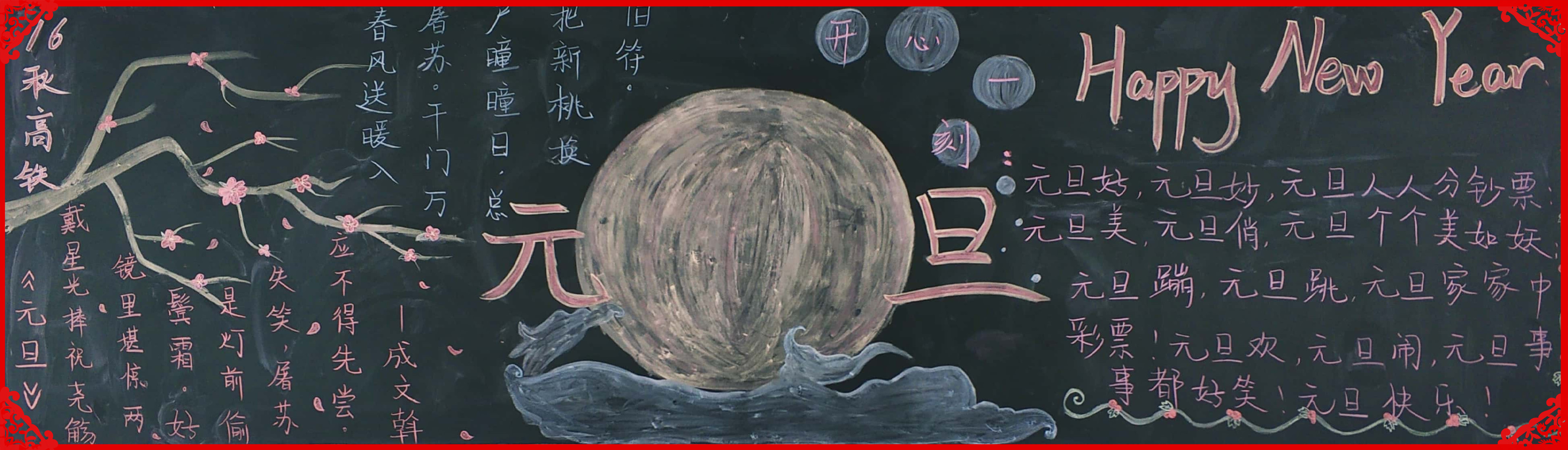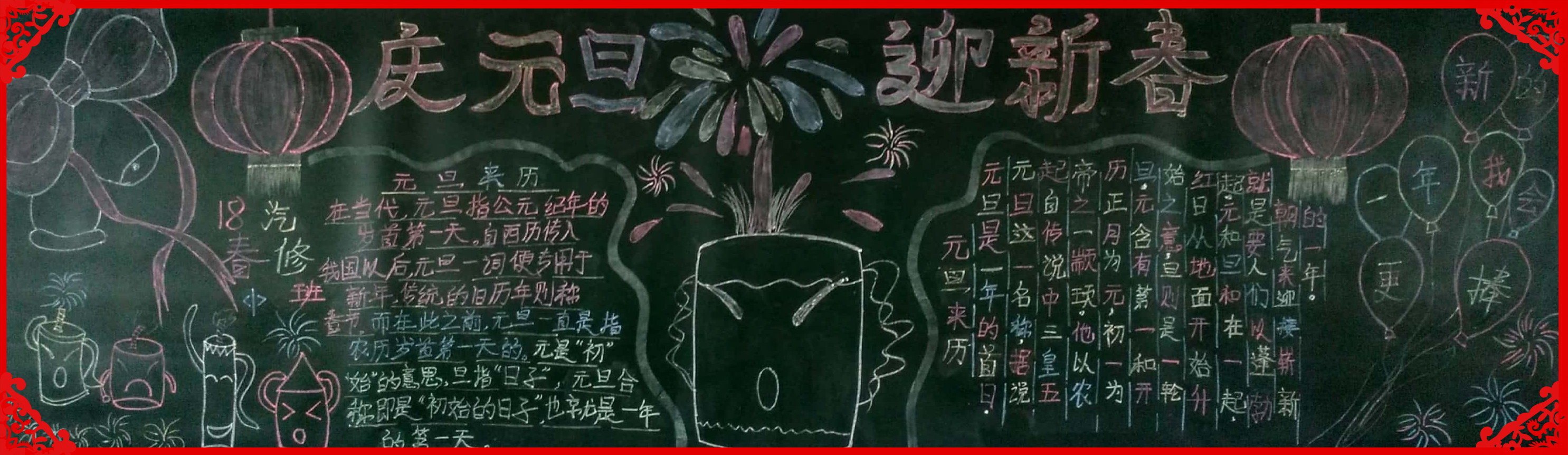 为提高中职生的创新意识,营造良好的校园文化氖围,我校在元旦来临之际举办了“迎元旦贺新年”黑板报的迎元旦活动。此次活动不仅可以营造出活跃的元旦气氛,而且能陶冶中职生们的情操,有助于中职生们在多彩教育下的快乐成长!各班同学们经过精心准备,一个个别出心栽的黑板报就呈现在同学们的面前了。同学们用自己的方式表达了对新年到来的渴望。