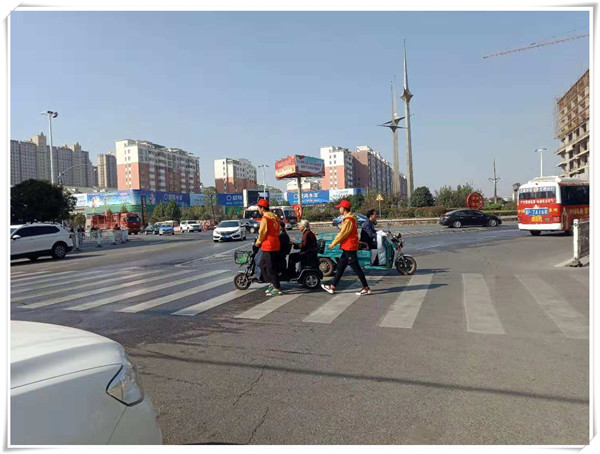 到达目的地,同学们自觉分成小组,各自坚守好自己的岗位,他们不仅协助交警指挥交通规则,而且时刻做好助人为乐的准备。9:00左右街上的人越来越多,其中一位年迈的老爷爷拄着拐仗缓慢走过来,这时我校学生陈书文和白梦好同学看到后,赶快跑过来亲切的从旁扶着老爷爷,慢慢过马路到了对面老爷爷感动的说,孩子们真好啊!接着又有几位开三轮车的老人迷路了,郭亚楠,凡新莲,马新鹏等几位同学应接不暇。而且非常热情地帮助老人们指路。过了一会儿一位提着水果的大妈,一不小心手提袋破了,刚买的水果蔬菜撒了一地。黄文贵和张金荣两位同学迅速跑过去帮大妈把东西捡好并帮忙把他送回家,大妈高兴的不知道说什么好一直握着,同学们的手不放。