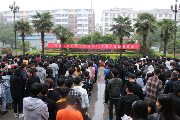 为弘扬五四精神,纪念五四运动一百周年,4月29日,我校团委在学校国旗前举行纪念五四运动一百周年宣誓活动。
