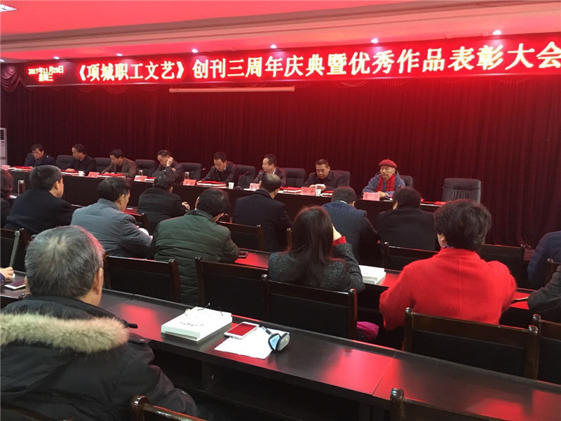 《项城职工文艺》创刊三周年庆典暨优秀作品表彰大会11月29日上午在市总工会五楼会议室举行。我校工会主席潘志刚及工会工作人员参与了此次会议。