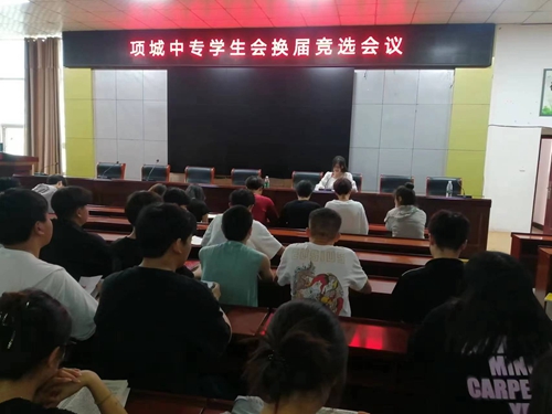 项城中专召开学生会换届竞选会议5月21日晚,在学校五楼会议室召开了项城中专学生会换届竞选大会,全体学生会成员齐聚一堂,现场气氛相当热烈。本次会议由学生会张紫涵同学主···