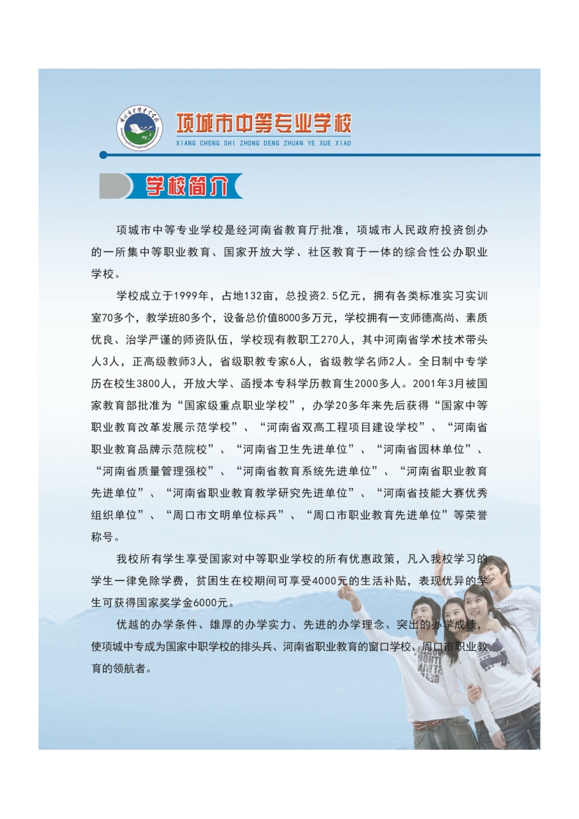 多宝·duobao官方网站-登录入口是经河南省教育厅批准,由项城市人民政府投资创办的一所集中等职业教育、电大远程教育、师资培训于一体的综合性职业学校。