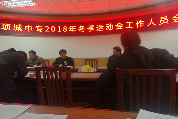 2018年11月24日上午10点,项城中专2018年冬季运动会工作人员会议在办公楼二楼会议室召开。团委汪书记对冬季运动会工作做了具体安排。政···