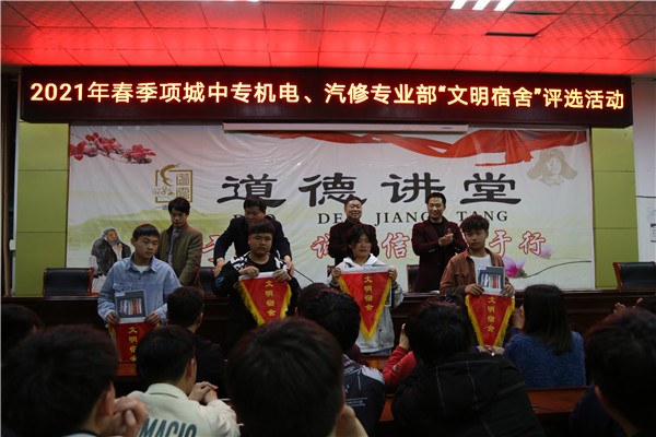 为加强宿舍管理,创建温馨、整洁、有序的宿舍环境,2021年4月11日晚自习第一节机电、汽修专业部在东实训楼五楼会议室举行“文明宿舍”评···