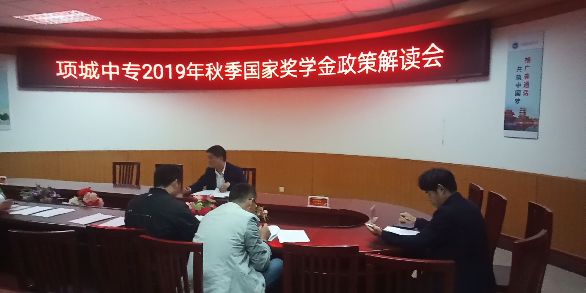2019年10月15日,项城中专资助中心在办公楼二楼会议室召开2019年秋季学期新生资助及免学费政策宣传解读会.与会人员有资助中心工作···